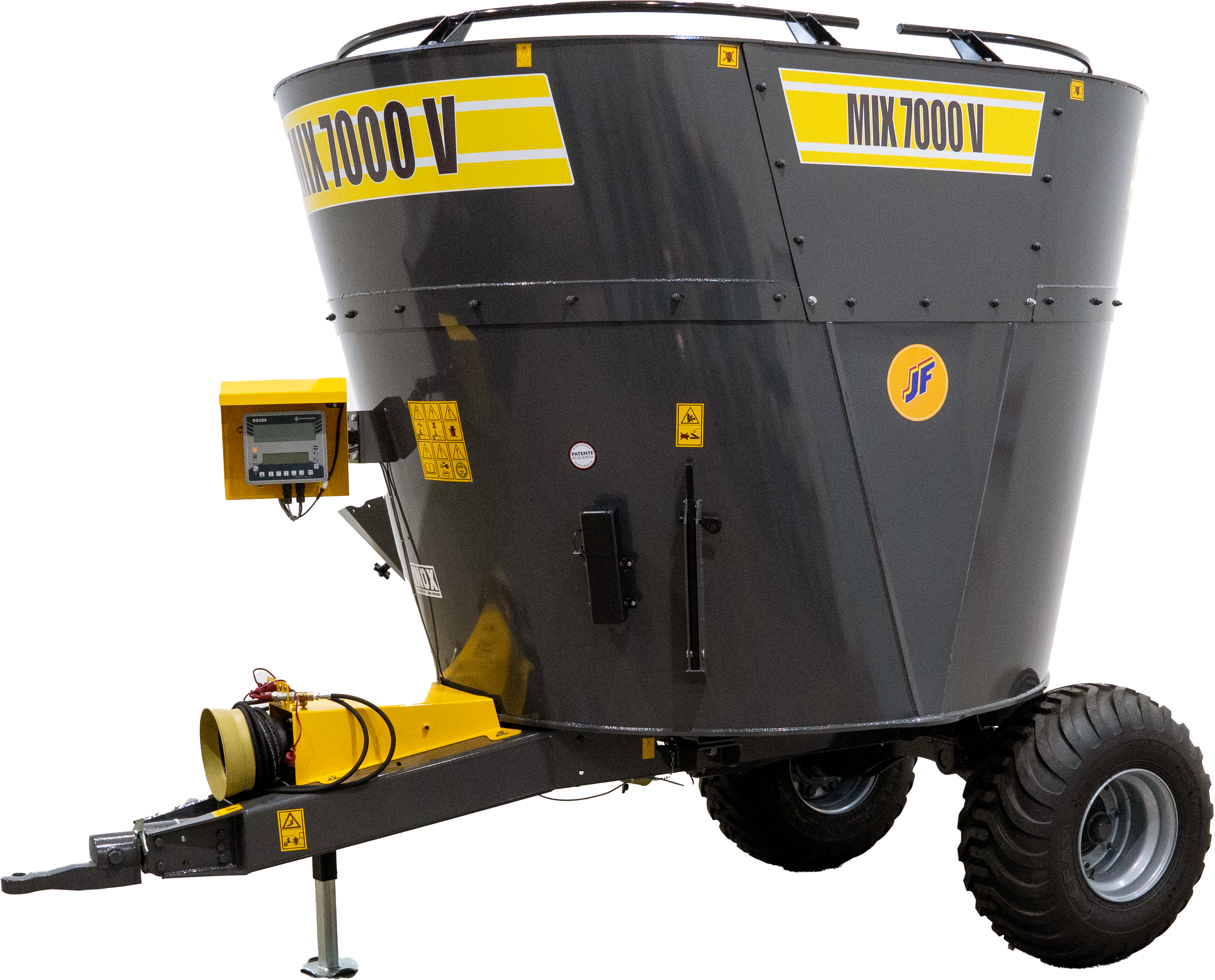 El mezclador vertical JF Mix 7000 V fue desarrollado teniendo en cuenta uno de los principales retos del ganadero: alimentación de calidad para mayor rendimiento y reducción de costos. Con la tecnología y calidad JF, el sistema de mezcla MOVmix© entrega una ración total homogénea del inicio al final del comedero.