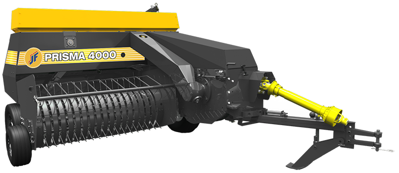 Empacadoras JF Prisma 4000/5000 para recogimiento, alimentación, prensa, amarre y contaje de pacas, para diversos forrajes, accionamiento por tractor, equipadas con sistema triplo de protección contra sobrecargas (Prisma 5000); sistema duplo de protección contra sobrecargas (Prisma 4000), recogedor equipado con rueda para evitar impactos con el suelo, cilindro hidraulico de ajuste de altura de recogimiento, dos anudadores automáticos que operan con hilo de sisal ó sintetico, amarre de las pacas al cierre de la operación, contenedor de rollos de hilos, pick-up de 1,73m (Prisma 5000), pick-up 1,50m (Prisma 4000), accionado por ejes cardan reforzados, sistema recogedor, empacador y anudador accionado por transmisión través engrenajes y ejes, sin cadenas ó bandas (Prisma 5000), pistón de compresión de alta velocidad (100 golpes/minuto) sobre baleros sellados, desplazamiento del pistón sobre rieles, sistema anudador alemán Rasspe, horquilla alimentadora autodeflectora, sistema con 4 resortes contra regresso de las pacas, cardan con embrague, soporte de las agujas con freno, elevador de pacas para descarga directamente en remolques (opcional). Producción, rotación y potencia de acuerdo con la tabla tecnica de este documento.