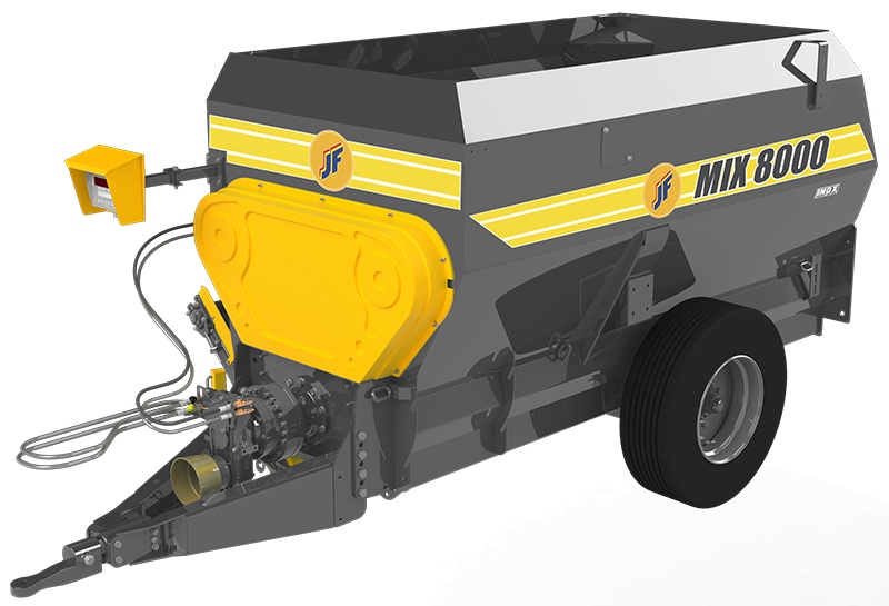 La línea de mezcladores JF Mix 4000/6000/8000 fueran desarrollados para satisfacer a los productores de leche y carne. Equipado con desensilador de auto carga universal y con sistema de pesaje con balanza DG500, cuenta con 3 sensores de carga de alta precisión, permite descargar las informaciones en la computadora a través de una puerta USB (pen-drive) y tiene mucho más opciones de recetas.