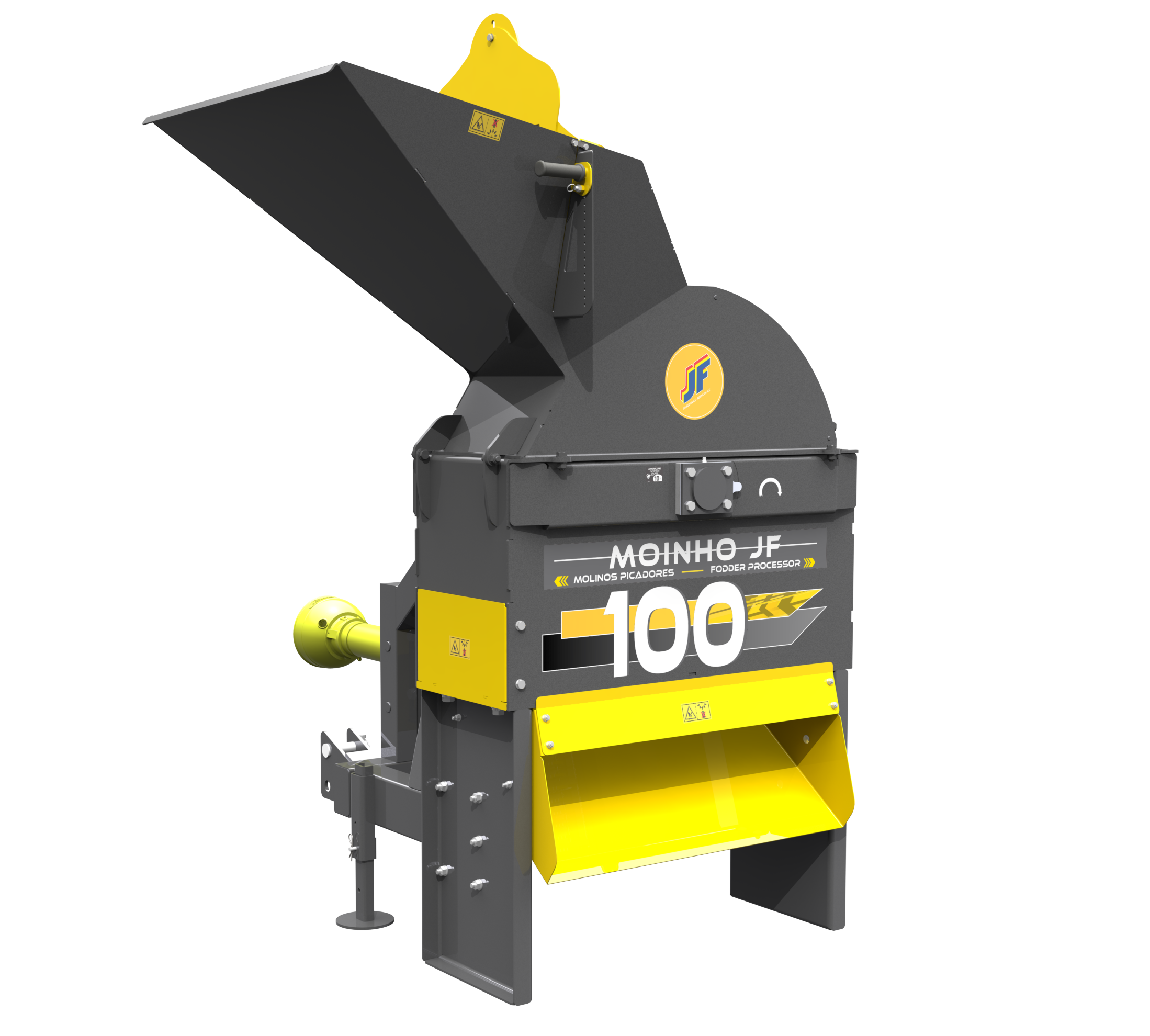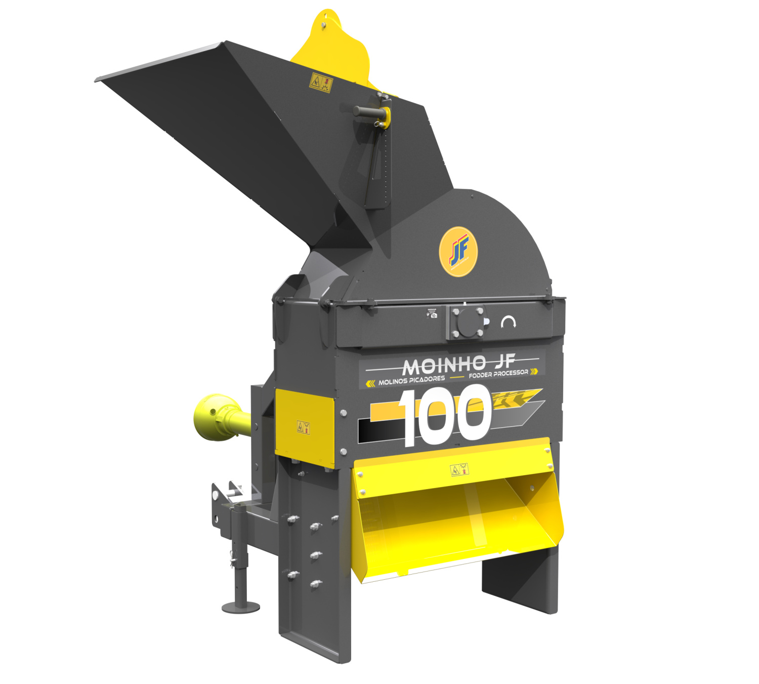 Forte e robusto, o moinho JF 100 tritura a cultura em seu estado seco ou úmido.