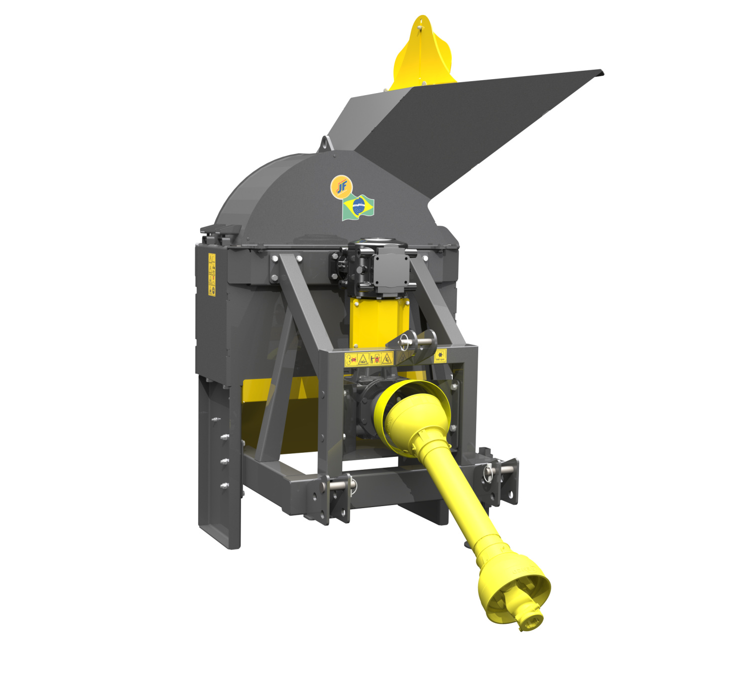 Moinho triturador com acionamento tratorizado, equipado com bica de alimentação, bica de saída lateral, bica de saída inferior, estrutura em aço, rotor moedor completo em aço especial, com peneiras furos 5mm, 8mm, 10 mm e 14mm para milho seco em grãos ou espigas com palha.Transformam milho em quirera e rolão, trituram palhas de cereais e sementes, além de possuir características ideais para a produção da silagem do grão úmido do milho. É acionado por tratores com potência de 80/130 cv a 540 rpm na tomada de potência (TDP) do trator. Proporcionam alto rendimento na produção da ração animal.