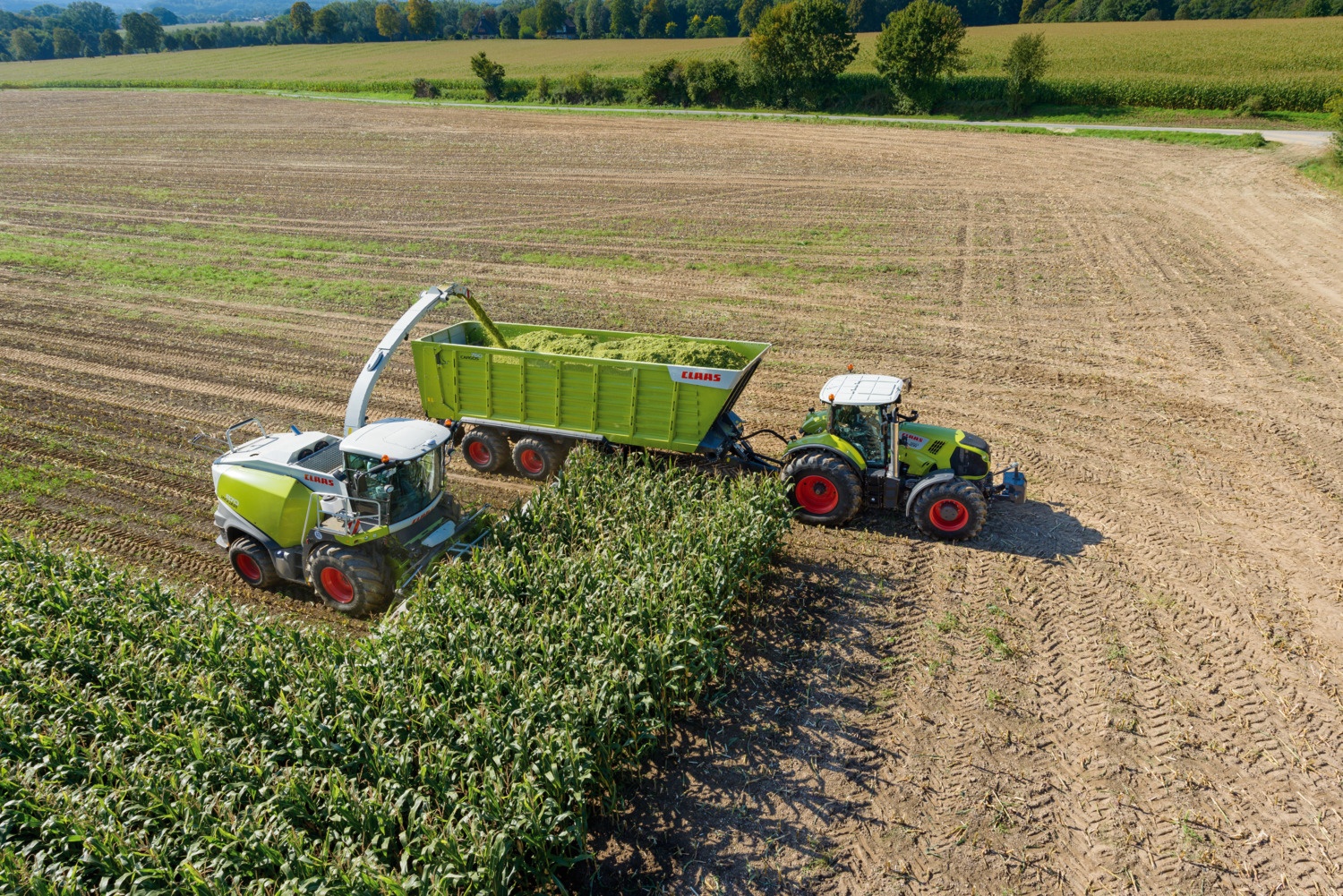 CPS – CLAAS Power System: Conceito de transmissão direta sem perda de eficiência, garante melhor desempenho e rentabilidade, possui trem de rodagem confiável e com grande força de tração; Tambor de facas V-CLASSIC V24 com corte preciso, testado, próprio para pasto ou milho e adequado para fibras longas; e facas V20 para forragens grossas; QUICK STOP: freia ativamente o fluxo de material dentro da máquina e demais agregados para evitar acidentes